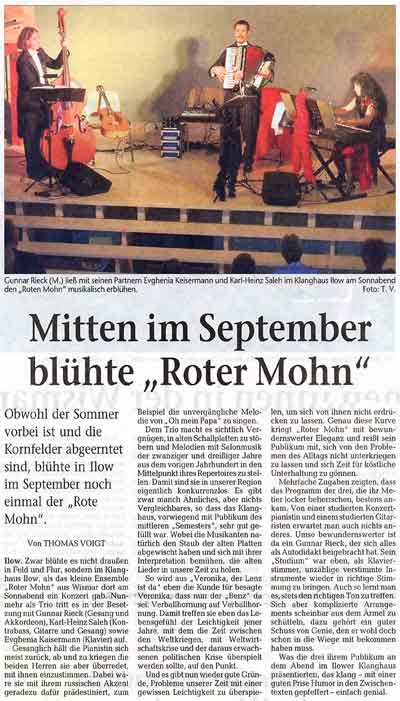 Übrigens, manche Lieder solcher Abende kann man auch erleben, wenn beide Musikanten bei Landgang in einem anderen ihrer Projekte dann "Roten Mohn" pflücken.